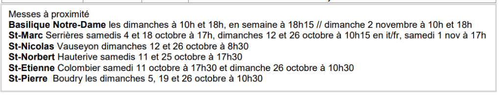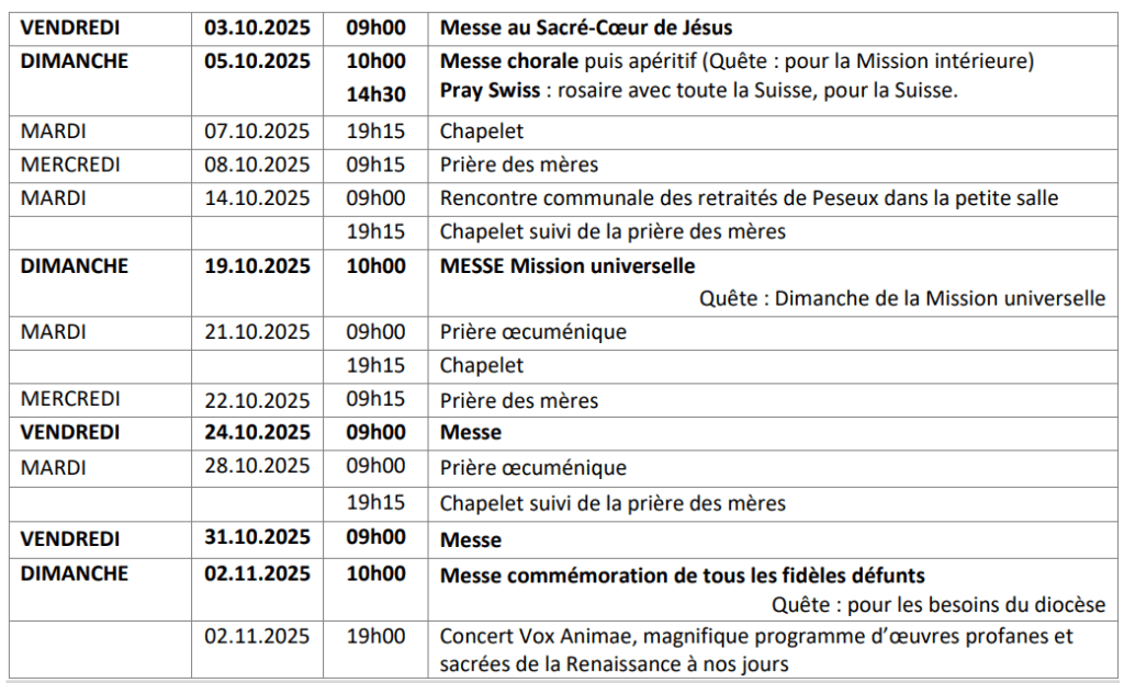 MESSES ET PRIERES DURANT LE MOIS D’OCTOBRE