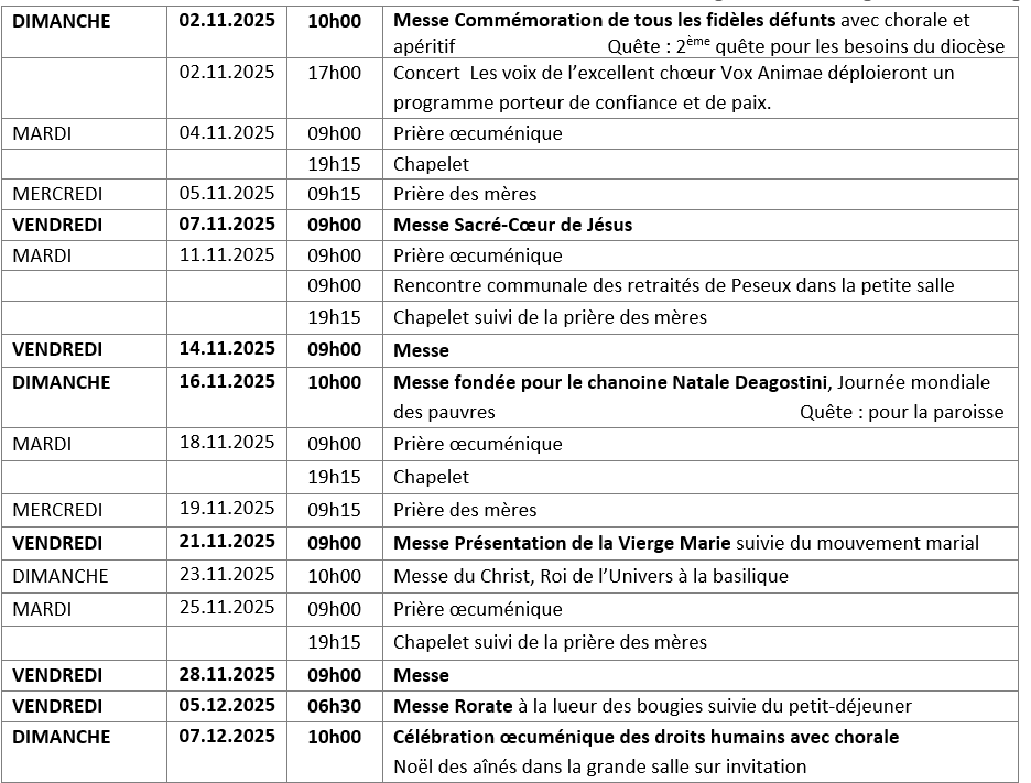 Si vous souhaitez obtenir le missel des dimanches 2025-2026, adressez-vous à la sacristie après une messe. Son prix est de 15 francs.