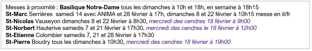 MESSES ET PRIERES A L’ÉGLISE NOTRE-DAME DE COMPASSION – PESEUX – FEVRIER– 2026